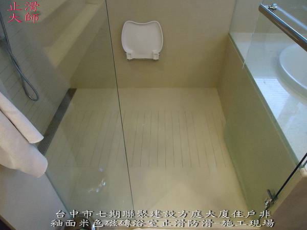 台中市七期聯聚建設方庭大廈住戶非釉面米色磁磚浴室止滑防滑-施工現場-佶川科技止滑大師,Pro Anti-Slip,止滑液防滑液創業加盟連鎖,止滑劑防滑劑止滑防滑,專業施工,地坪磁磚浴室防滑止滑 -浴室防滑,浴室止滑,磁磚防滑,磁磚止滑,止滑劑,防滑劑磨石子,石材防滑,石材止滑,地面止滑公司,地面防滑公司,防滑塗料,止滑塗料,防滑藥劑,止滑藥劑,防滑商品,止滑商品