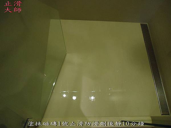 塗抹磁磚1號止滑防滑劑後靜10分鐘-佶川科技止滑大師,Pro Anti-Slip,止滑液防滑液創業加盟連鎖,止滑劑防滑劑止滑防滑,專業施工,地坪磁磚浴室防滑止滑 -浴室防滑,浴室止滑,磁磚防滑,磁磚止滑,止滑劑,防滑劑磨石子,石材防滑,石材止滑,地面止滑公司,地面防滑公司,防滑塗料,止滑塗料,防滑藥劑,止滑藥劑,防滑商品,止滑商品