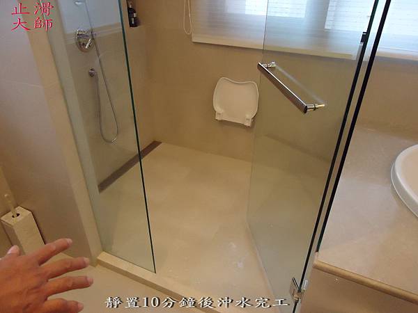 靜置10分鐘後沖水完工-佶川科技止滑大師,Pro Anti-Slip,止滑液防滑液創業加盟連鎖,止滑劑防滑劑止滑防滑,專業施工,地坪磁磚浴室防滑止滑 -浴室防滑,浴室止滑,磁磚防滑,磁磚止滑,止滑劑,防滑劑磨石子,石材防滑,石材止滑,地面止滑公司,地面防滑公司,防滑塗料,止滑塗料,防滑藥劑,止滑藥劑,防滑商品,止滑商品
