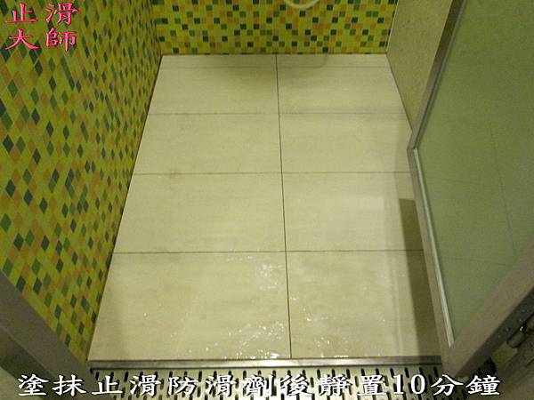 塗抹止滑防滑劑後靜置10分鐘-佶川科技止滑大師Pro Anti-Slip Treatment,止滑液防滑液,創業加盟連鎖,止滑劑防滑劑,止滑防滑專業施工,地坪磁磚浴室止滑防滑-游泳池防滑,溫泉防滑,飯店防滑,汽車旅館防滑,騎樓防滑,磨石子,石材防滑,石材止滑,餐廳防滑,廚房防滑,車道防滑,陽台防滑,防滑塗料,止滑塗料,防滑藥劑,止滑藥劑,佶川科技止滑大師PAST Pro Anti-Slip Treatment,防滑產品,止滑產品,止滑液防滑液,磨石子