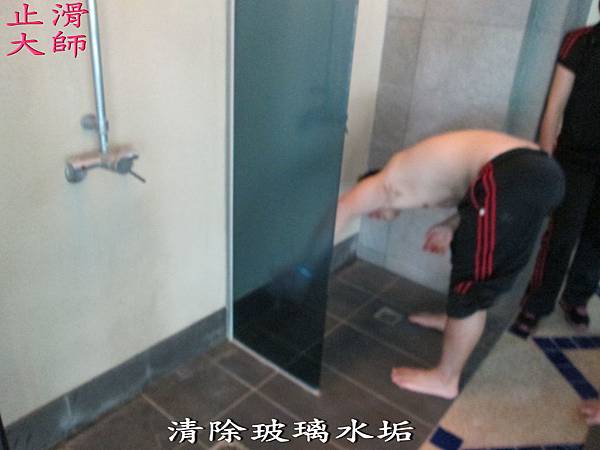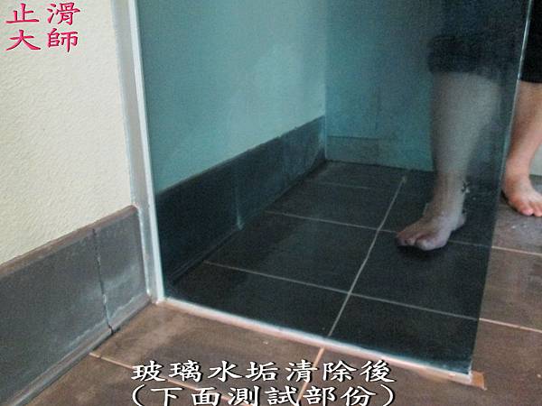 玻璃水垢清除後(下面為測試部分)-佶川科技止滑大師Pro Anti-Slip Treatment,止滑液防滑液,創業加盟連鎖,止滑劑防滑劑,止滑防滑專業施工,地坪磁磚浴室止滑防滑-游泳池防滑,溫泉防滑,飯店防滑,汽車旅館防滑,騎樓防滑,磨石子,石材防滑,石材止滑,餐廳防滑,廚房防滑,車道防滑,陽台防滑,防滑塗料,止滑塗料,防滑藥劑,止滑藥劑,佶川科技止滑大師PAST Pro Anti-Slip Treatment,防滑產品,止滑產品,止滑液防滑液,磨石子